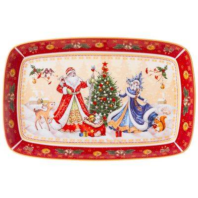 85-1725 БЛЮДО LEFARD "ДЕД МОРОЗ И СНЕГУРОЧКА" ПРЯМОУГ. 30*19*4 СМ КРАСНОЕ (КОР=12ШТ.)
