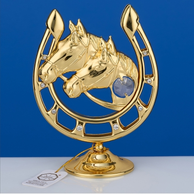 M-U-3983/C (96) Подкова с лошадьми и одним прозрачным хрусталиком, 9х5х12 см.
