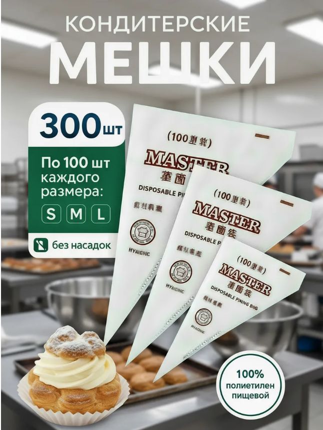 И300 Одноразовые кондитерские мешки без насадок (3 размера набор 300 шт) (30)