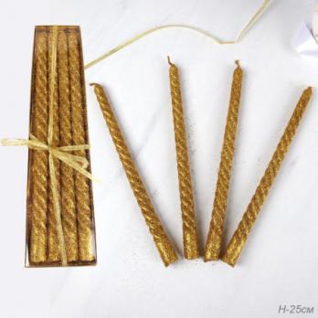 746663 Свеча стержень 4 штуки 25 см набор витая / BG-2 /уп 120/ золото