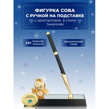 M-U-4827-17H3/CG (24) Ручка на подставке "Сова", с прозрачных хрусталиками 16*6*19см