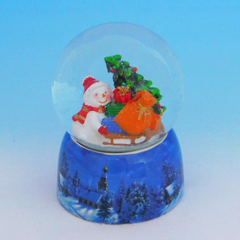 HY-15737 Стеклянный шар со снеговиками, на фарфоровой подставке D=8см, H=11см