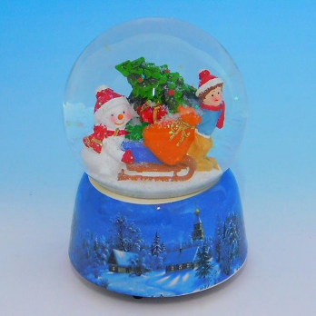 HY-15743 Стеклянный шар с "Зима", на фарфоровой подставке, музыкальный D=10см,H=14см