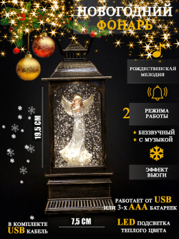 К23012Е Фонарь новогодний 9,5*9,5*23 см (USB+16 мелодий) (12)