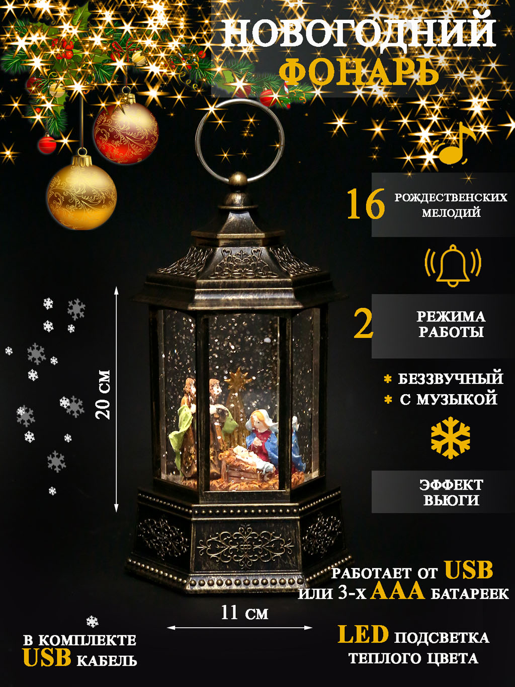 К31171 Фонарь новогодний USB+ музыка(24)