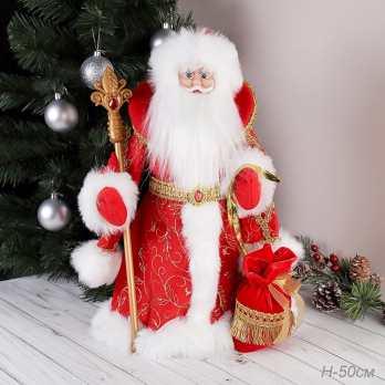 694837 Фигурка Дед Мороз 50 см + бантик / 1315-20 /уп 12/музыкальная