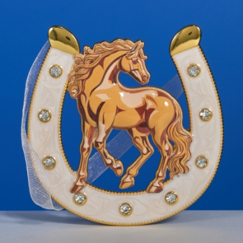 HG-20265 (48) Подкова "Лошадь" с эмалью и стразами, подвесная, 10х0,5х10,5 см.