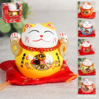 717774 Копилка Кот манэки-нэко на коврике / 201 /уп 150/ (Красный)