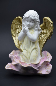 статуэтка "АНГЕЛ БОЛЬШОЙ ДЕВОЧКА В РОЗЕ" бело-золото