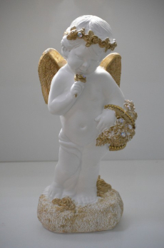 статуэтка "АНГЕЛ БОЛЬШОЙ МАЛЬЧИК С КОРЗИНОЙ" бело-золото