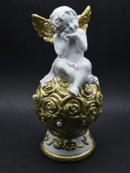статуэтка "АНГЕЛ БОЛЬШОЙ НА ШАРЕ ИЗ РОЗ" бело-золото