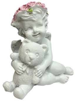 статуэтка "АНГЕЛ МАЛЫЙ С МИШКОЙ" бело-золото