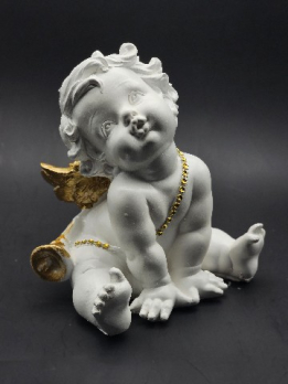статуэтка "АНГЕЛ СРЕДНИЙ С ДУДКОЙ" бело-золото