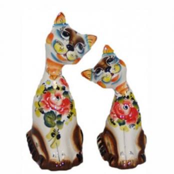 1060 Коты цветные гжель 20см