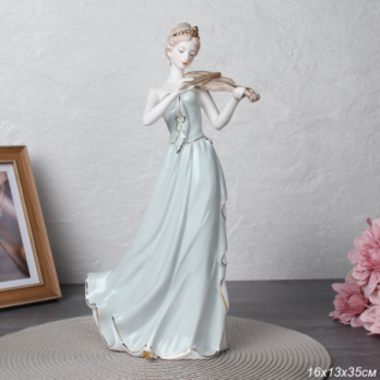 741586 Статуэтка Дама музыкант 35 см серое платье / HW-35/1 /уп 12