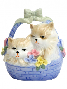 К30138 Фарфоровая композиция Кошки в лукошке 13 см