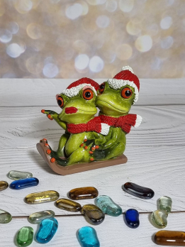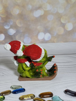 КYX39004R Лягушки на санках новогодние 13*7*10 см (24)