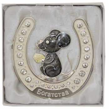 HG-21634 (48) Подкова "Мышка" с эмалью и стразами, подвесная 10*0,5*10см.