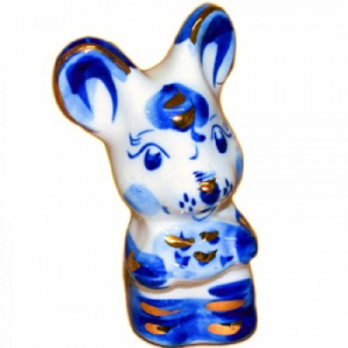 Мышка с сыром гжель с позолотой 7.5 см., арт.2673