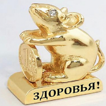 U-5441/GPG (12наб) Набор из 16-ти шт. "Мышка с монеткой и пожеланием", два хрустал., 3.2*1.5*3.5 см