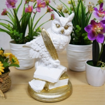 статуэтка "СОВА НА КНИГАХ" бело-золото
