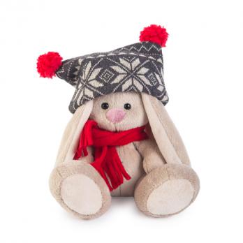SidX-179 Зайка Ми в черной шапке с помпонами, 15см