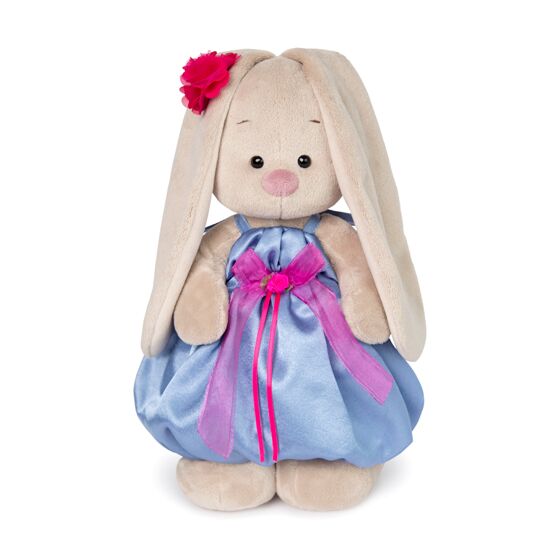StS-237 Зайка Ми в синем платье с роз. бант, 25см