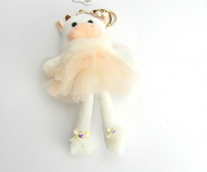 Брелок игрушка Корова в платье с мехом