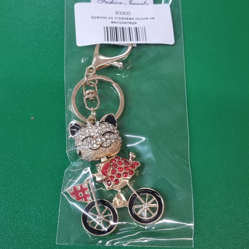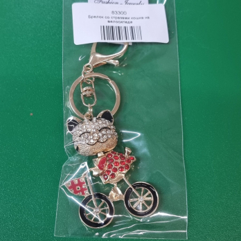Брелок со стразами кошка на велосипеде