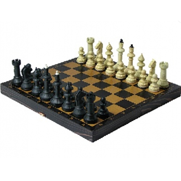 010-Шахматы Айвенго с дерев.черн.доской в золоте