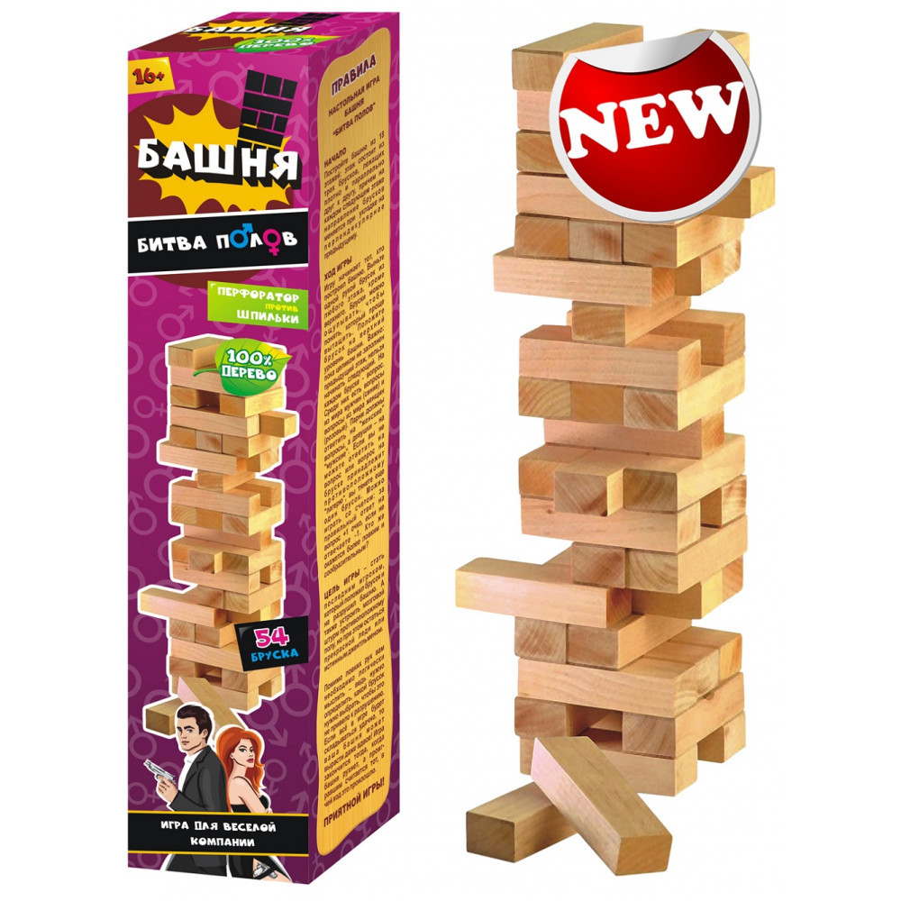 Падающая башня "Битва полов" 54 бруска, 32.8х7.2 см