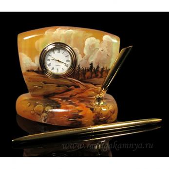 + 66716 Письм.прибор селенит с часами 11*7*10 750г