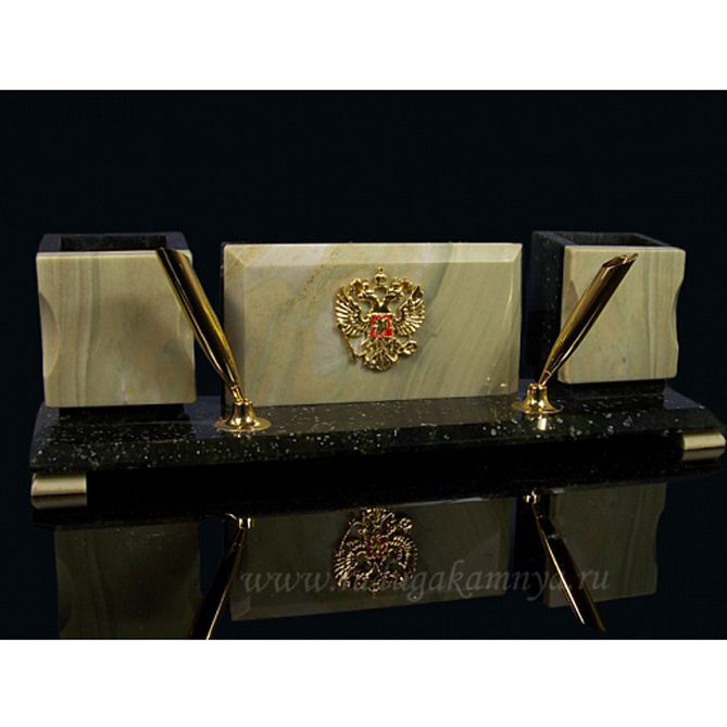 1315502 Письм.прибор змеевик,офиокальцит 29*8*9см