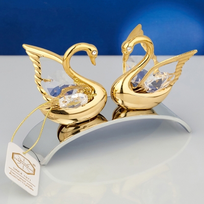 M-U-4474/GN (96) 8,5*4*6см Два лебедя с 4 хрусталиками на изогнутой подставке, позолоченные