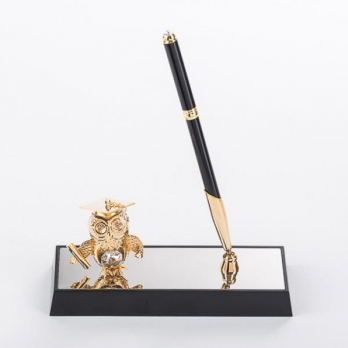 M-U-4827-17H3/CG (24) Ручка на подставке "Сова", с прозрачных хрусталиками 16*6*19см
