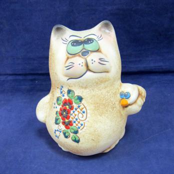 59*-Копилка Кот с птицей шамот 20*18*14