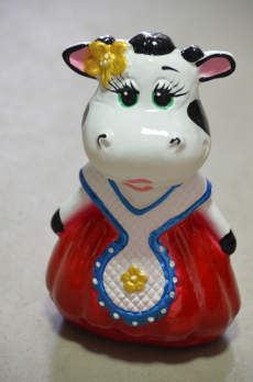 копилка "КОРОВА В ПЛАТЬЕ мал гл" Саша