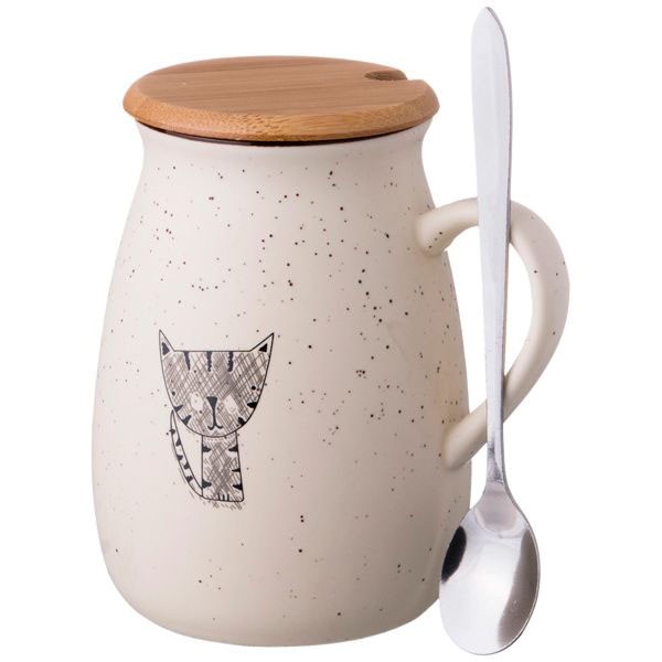 495-1028 Кружка с крышкой и ложкой 350мл 4 вида