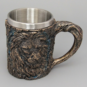 PW-10516 (18) Кружка "Лев", нержавеющая сталь/искусственный камень 15*9,5*11,5см, 430 мл