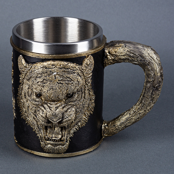 PW-10558 (18) Кружка "Тигр", нержавеющая сталь/искусственный камень 15*10*11,2см, 430 мл