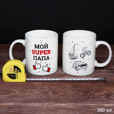 694476 Кружка 380 мл Папа в наборе с рулеткой / RW-654 /уп 12/72/