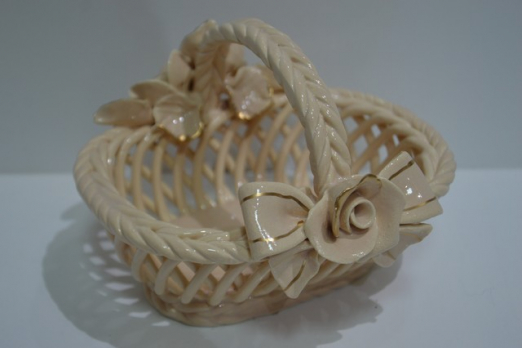 конфетница "ПЛЕТ БОЯРОЧКА С РУЧКОЙ"кремовая