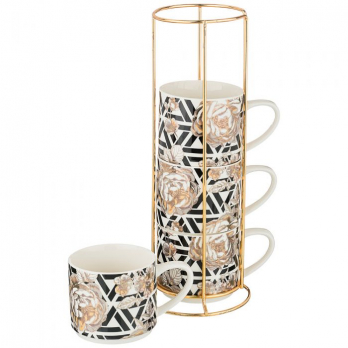 133-323НАБОР КРУЖЕК "GOLDEN ROSE" 4 ШТ. НА МЕТАЛЛ.ПОДСТАВКЕ 360МЛ, ГЕОМЕТРИЯ (КОР=8НАБ.)