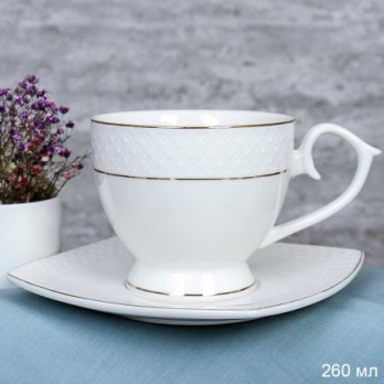 709475 Чайный набор 2 предмета 260 мл на ножке картон / GA2 ПАРА /уп 6/48/ костяной фарфор
