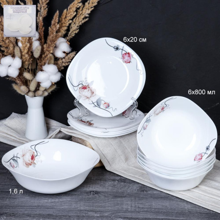 721947 Столовый набор 13 предметов квадратный / Sq13/7595 L (7315) /уп 2/ Чайная роза на ветке