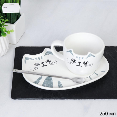 737434 Чайный набор 220 мл 3 предмета с ложкой Котик / 10-222-Set3 /уп 36/