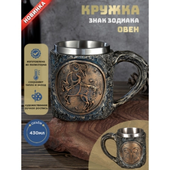 M-PW-10607 (18) Кружка Знак зодиака "Овен", нержавеющая сталь/искусственный камень 15*10*11,5см, 430
