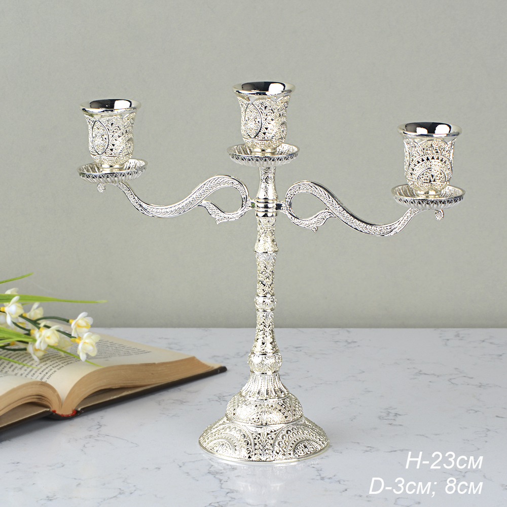 690793 Подсвечник на 3 свечи серебро 23 см / 303G /уп 48/
