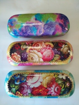 1245/4 Футляр для очков "Цветочный узор"-цветной корпус с блестками 16,5х6,5см