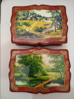 1501-2 Шкатулка лаков.Фигурная 18х13 Природный пейзаж /дерево/